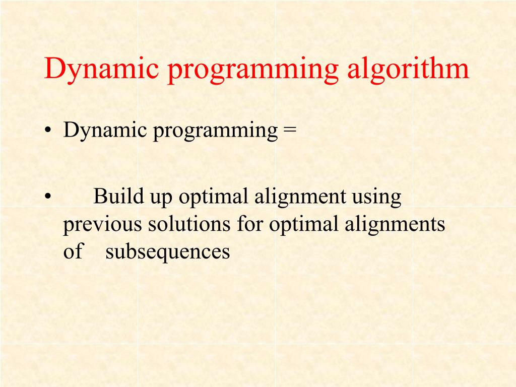 Dynamic programming algorithm • Dynamic programming = • Build up optimal alignment using previous solutions for optimal alignments of subsequences