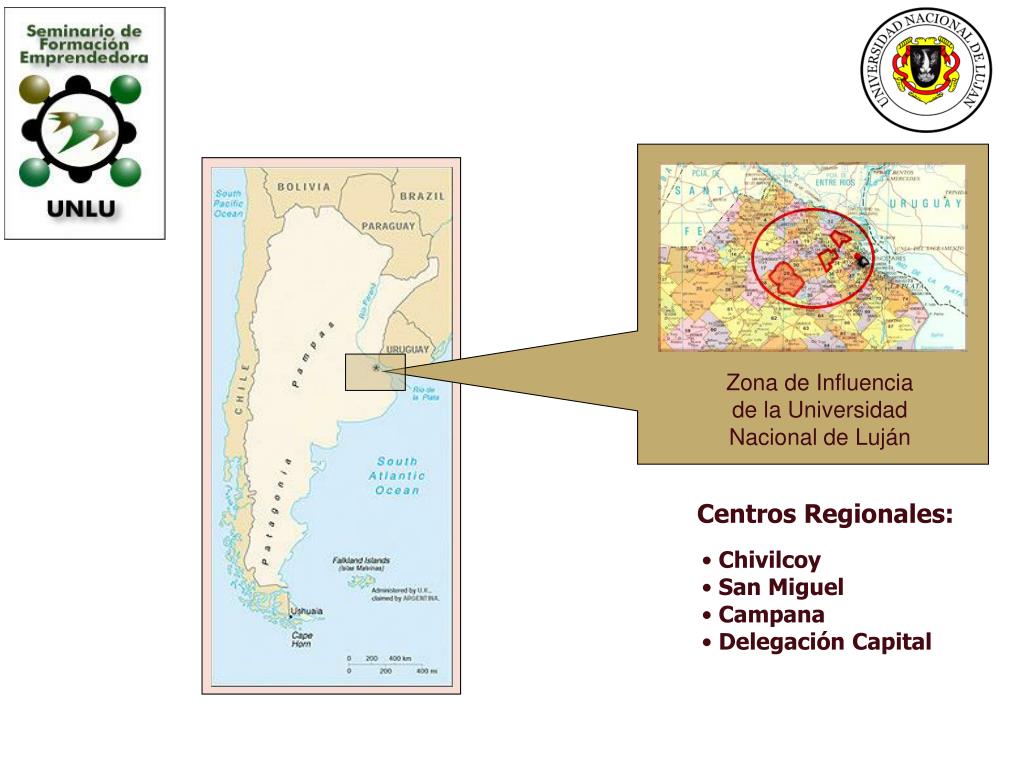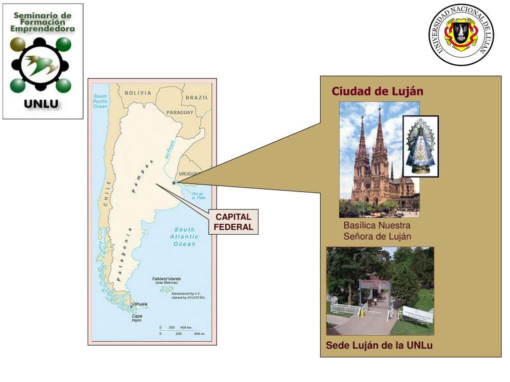 Seminario Formación Emprendedora. Licenciatura en Administración Universidad Nacional de Luján. Ciudad de Luján. CAPITAL FEDERAL. Basílica Nuestra Señora de Luján. Sede Luján de la UNLu. Zona de Influencia de la Universidad Nacional de Luján. Centros Regionales:. Chivilcoy