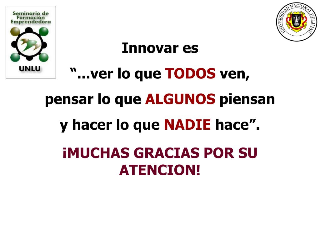 Innovar es “...ver lo que TODOS ven, pensar lo que ALGUNOS piensan y hacer lo que NADIE hace”. ¡MUCHAS GRACIAS POR SU ATENCION!
