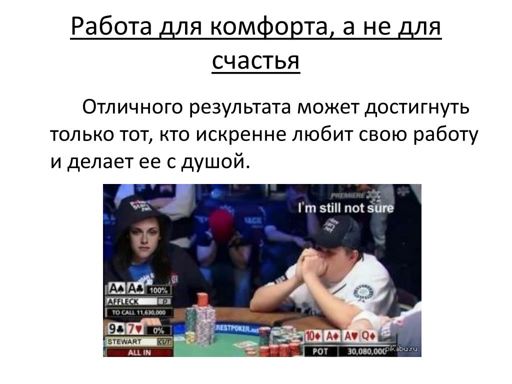 Работа для комфорта, а не для счастья Отличного результата может достигнуть только тот, кто искренне любит свою работу и делает ее с душой.