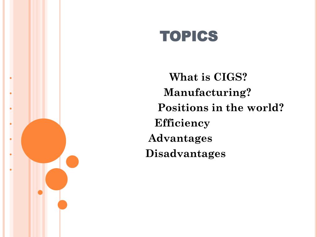Copper indium gallium selenide solar cells (CIGS). ESRA DANIŞAN KAZIM YALÇIN. TOPICS. What is CIGS? Manufacturing ? Positions in the world? Efficiency Advantages Disadvantages.