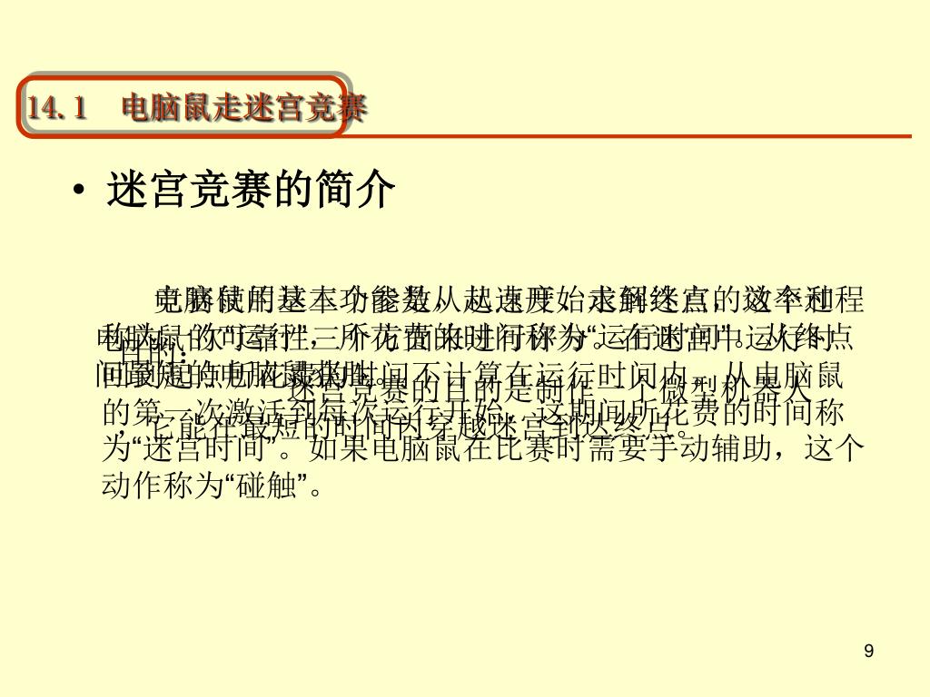 14.1 电脑鼠走迷宫竞赛 • 电脑鼠迷宫竞赛已经风靡全球