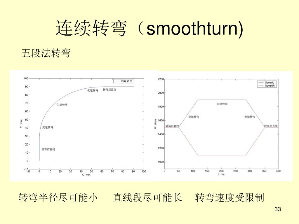 连续转弯(smoothturn) 五段法转弯 转弯半径尽可能小 直线段尽可能长 转弯速度受限制