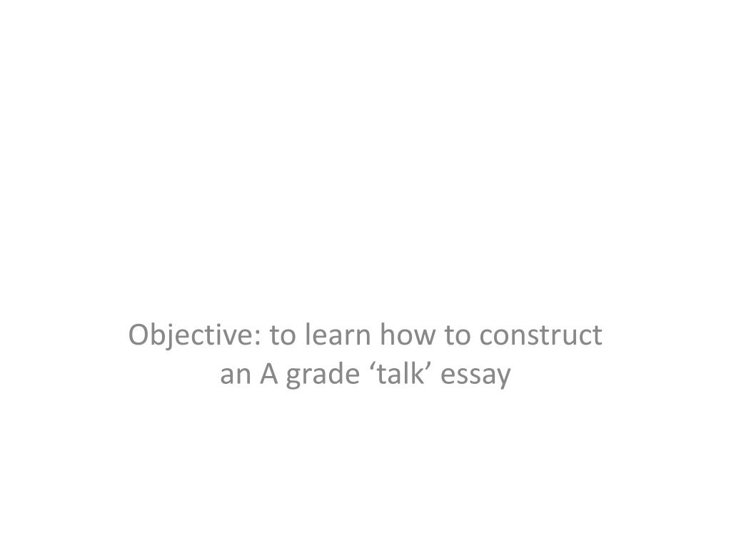 Objective: to learn how to construct an A grade ‘talk’ essay