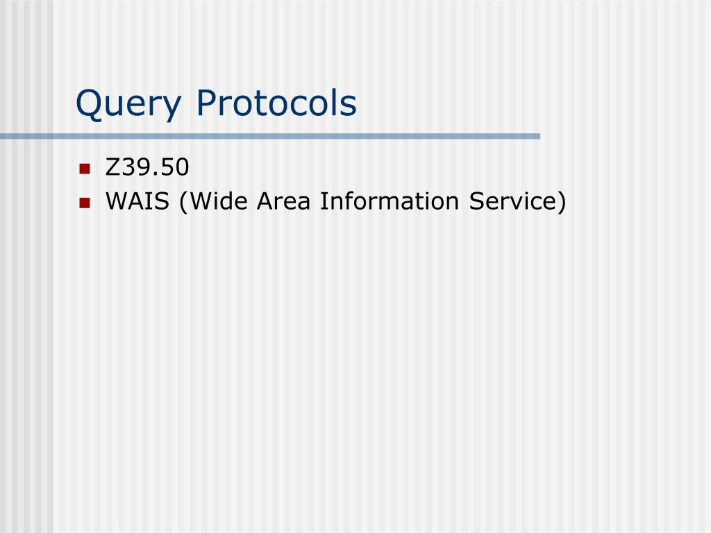 Query Protocols • Z39.50 • WAIS (Wide Area Information Service)