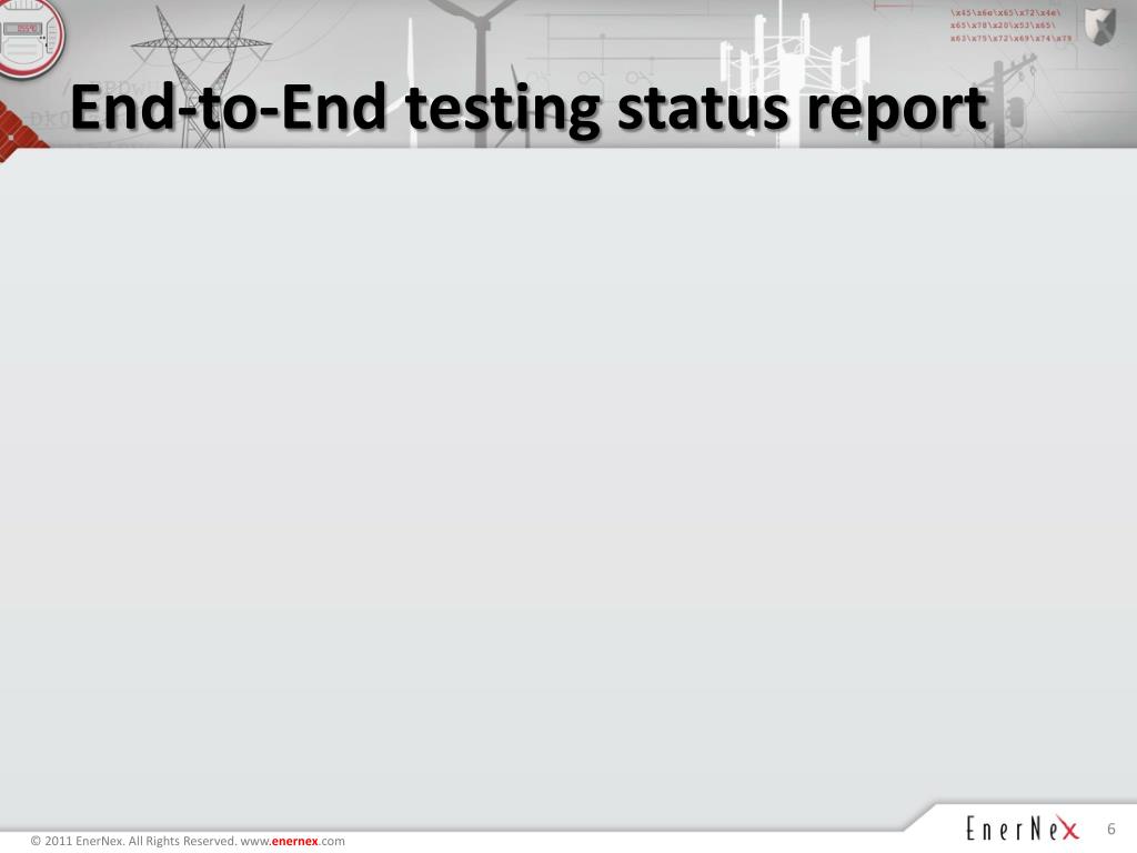 UCA ITCA Update • Work on ITCA has stalled due to available time • Recent work • Phil Beecher joined Jack Robinson and Kay Clinard on UCA ITCA study committee • UCA has signed “Memorandum of Understanding” • Quality manuals on UCAIug testing site:http://www.ucaiug.org/org/TechnicalO/Testing/Shared%20Documents/UCA_Documents_as_NIST_SGIP_ITCA • Issues: contractual, funding and high-level strategy