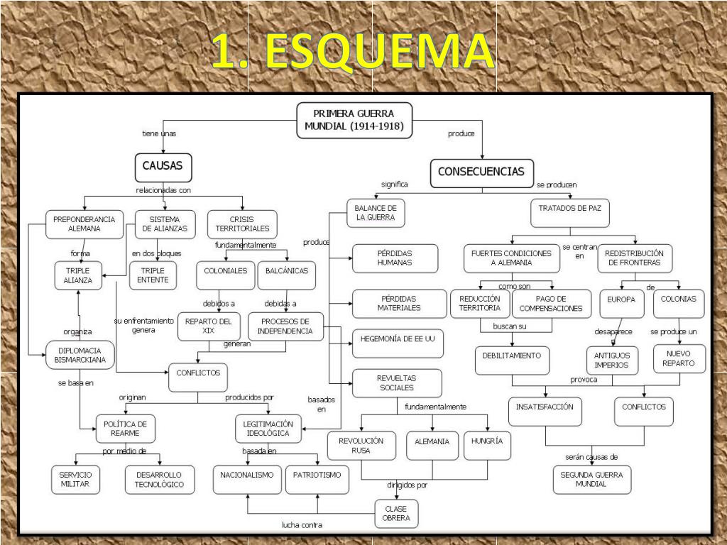 Primera Guerra Mundial. 28 de julio de 1914 y el 11 de noviembre de 1918 . ÍNDICE. Causas de la Primera Guerra Mundial. Países en conflicto. Elabora una Cronología con los hechos más destacados. Incluye uno o varios mapas. Define las distintas batallas: -Tannenberg