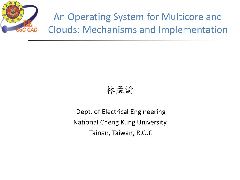 An Operating System for Multicore and Clouds: Mechanisms and Implementation 林孟諭 Dept. of Electrical Engineering National Cheng Kung University Tainan, Taiwan, R.O.C