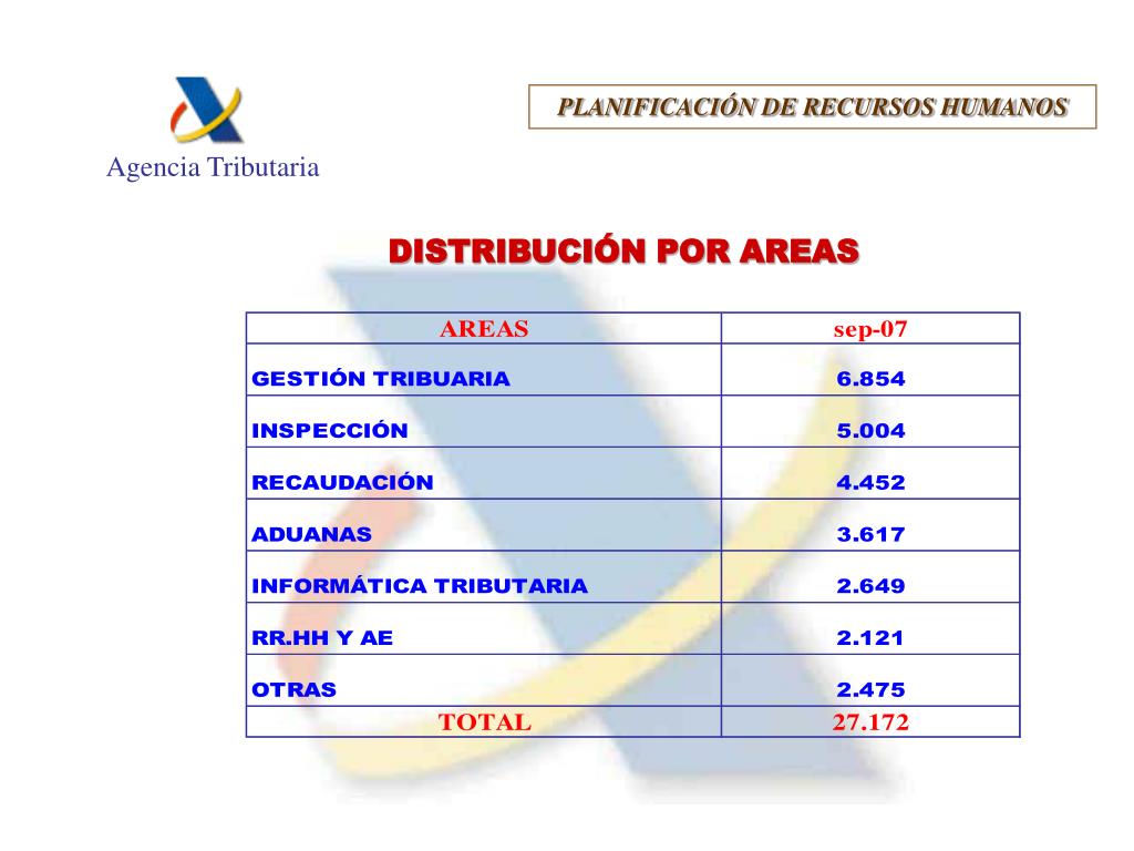 PLANIFICACIÓN DE RECURSOS HUMANOS DISTRIBUCIÓN POR AREAS