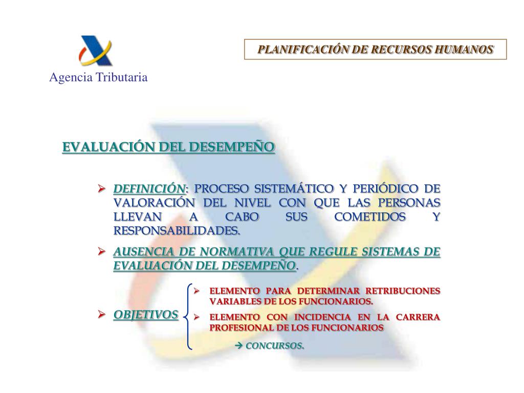 PONENCIA – LA PLANIFICACIÓN DE RECURSOS HUMANOS. EL PAPEL DE LA DIRECCIÓN DE RR.HH. EN LA ADMÓN. FINANCIERA AGENCIA TRIBUTARIA (ESPAÑA). SEMINARIO-TALLER: LA POLÍTICA DE RECURSOS HUMANOS COMO FACTOR ESENCIAL PARA EL MEJORAMIENTO DE LAS ADMINISTRACIONES DE FINANZAS DE AMÉRICA LATINA
