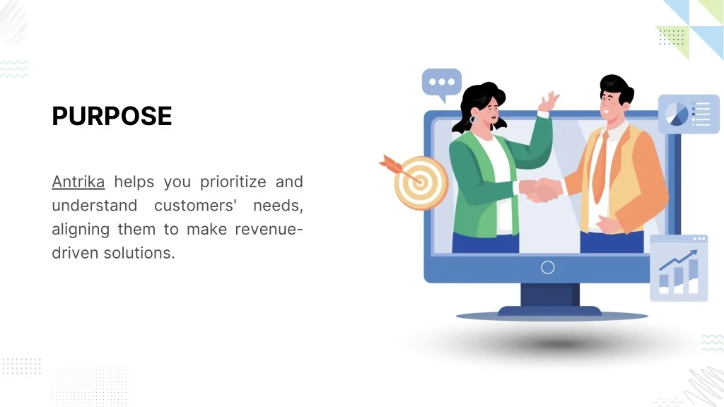 PURPOSE Antrika helps you prioritize and understand customers' needs, aligning them to make revenue- driven solutions.