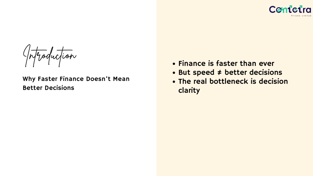 Introduction Finance is faster than ever But speed ≠ better decisions The real bottleneck is decision clarity Why Faster Finance Doesn’t Mean Better Decisions
