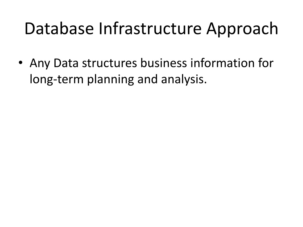 6. Database Infrastructure Approach • Any Data structures business information for long-term planning and analysis.