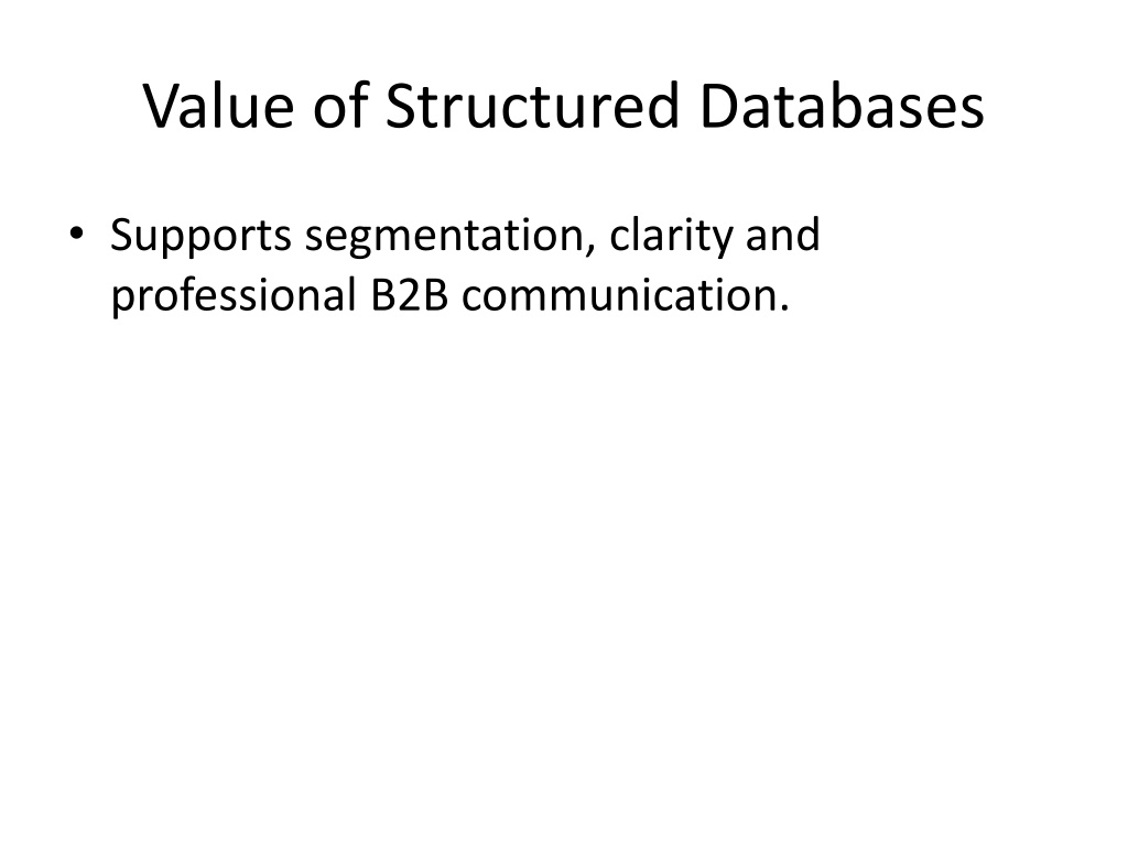 5. Value of Structured Databases • Supports segmentation, clarityand professional B2B communication.