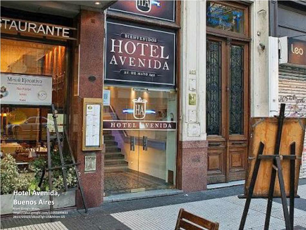 Hotel Avenida, Buenos Aires from Google Maps, https://plus.google.com/110556998332815725522/about?gl=US&hl=en-US