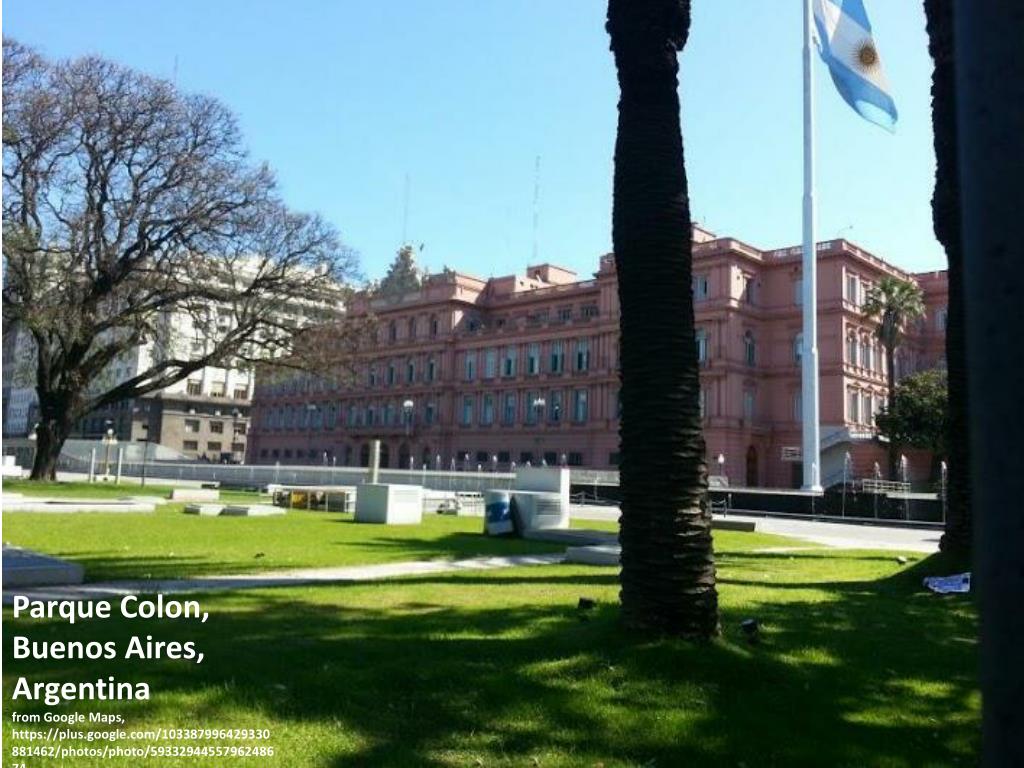 Hotel Avenida, Buenos Aires from Google Maps , https://plus.google.com/110556998332815725522/about?gl=US&hl=en-US. Parque Colon, Buenos Aires, Argentina from Google Maps , https://plus.google.com/103387996429330881462/photos/photo/5933294455796248674. Casa Rosada, Buenos Aires, Argentina