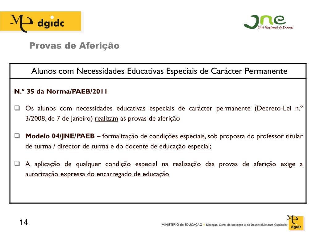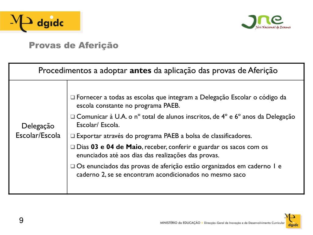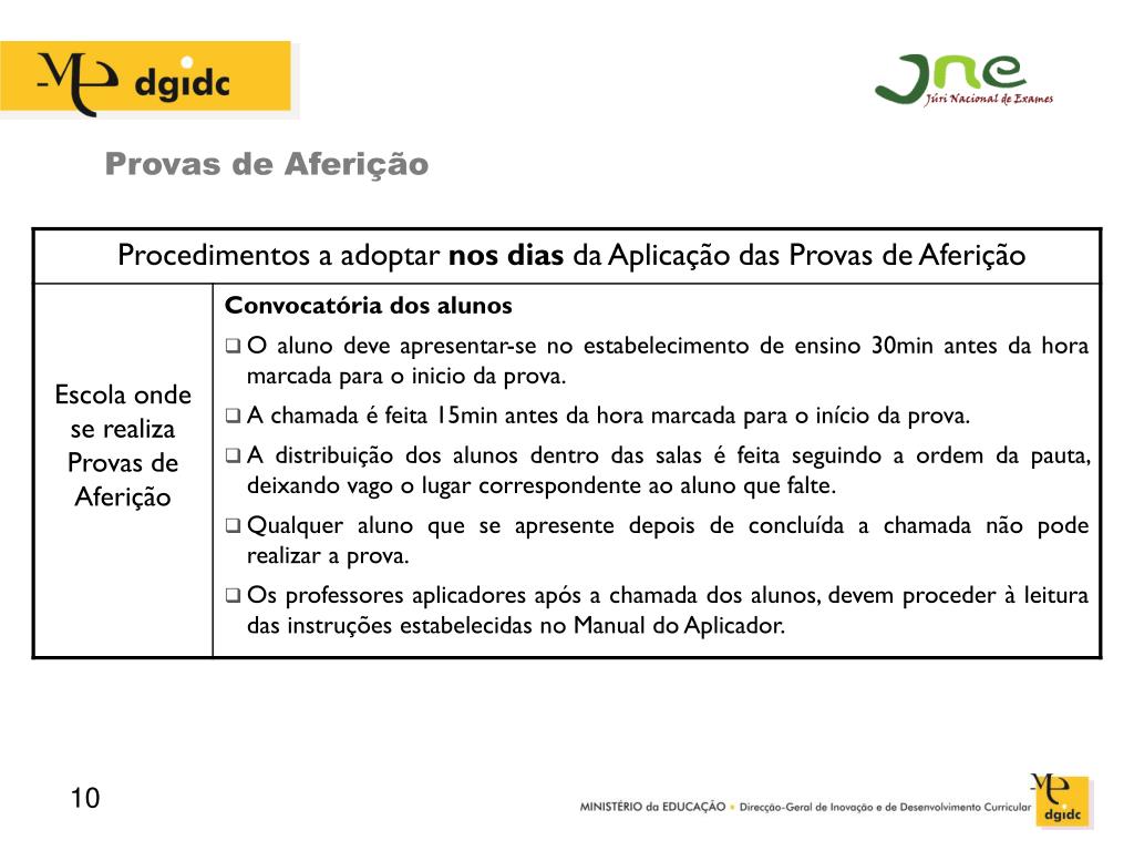 Júri Nacional de Exames. http://www.dgidc.min-edu.pt/JNE jne@dgidc.min-edu.pt. Abril - 2011. PROVAS DE AFERIÇÃO DO ENSINO BÁSICO. 2. Provas de Aferição. CALENDÁRIO DATA DA APLICAÇÃO DAS PROVAS DE AFERIÇÃO. CRONOGRAMA DAS ACÇÕES. Provas de Aferição. Provas de Aferição.