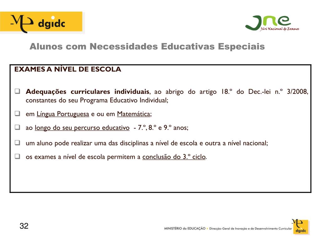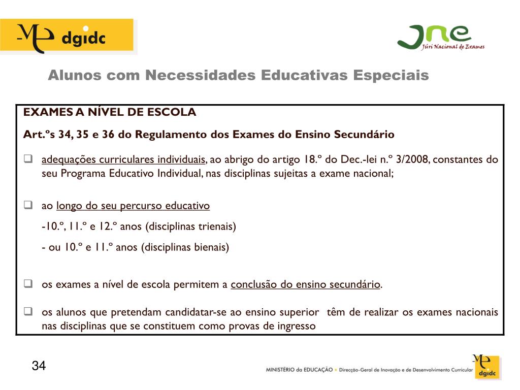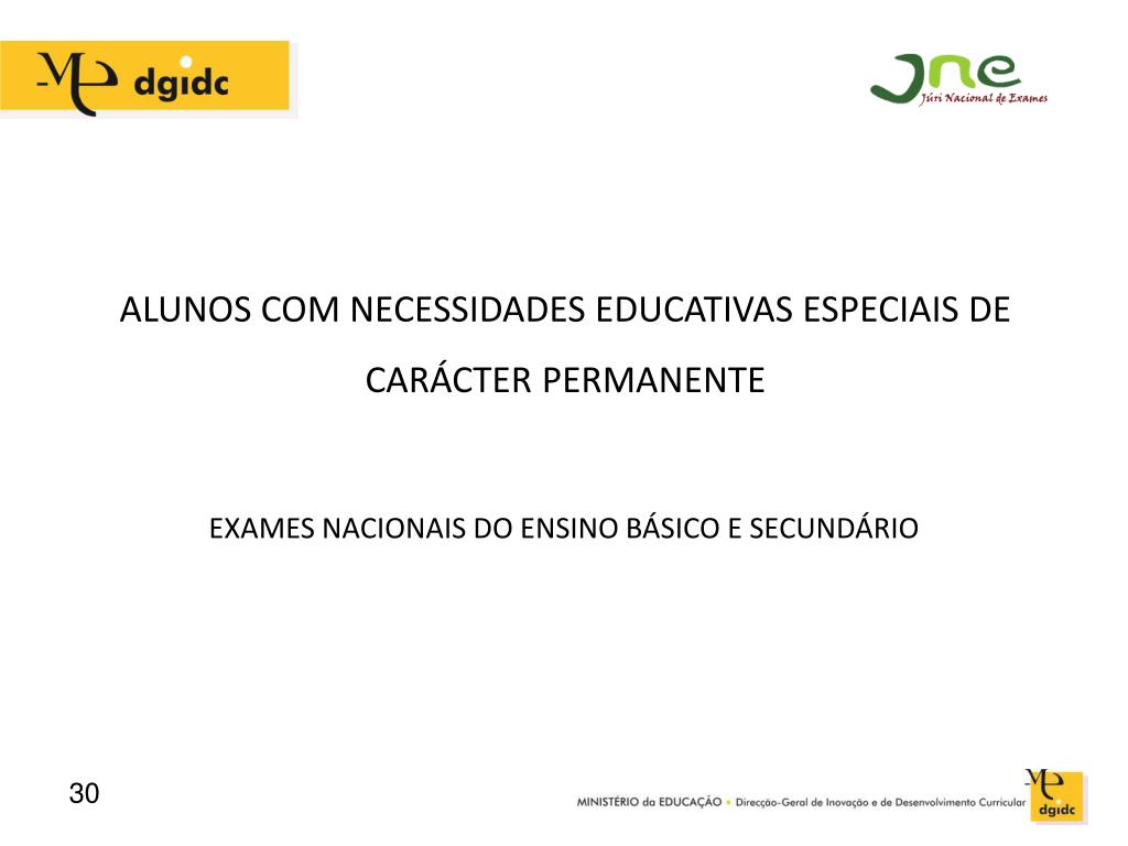 ALUNOS COM NECESSIDADES EDUCATIVAS ESPECIAIS DE CARÁCTER PERMANENTE EXAMES NACIONAIS DO ENSINO BÁSICO E SECUNDÁRIO