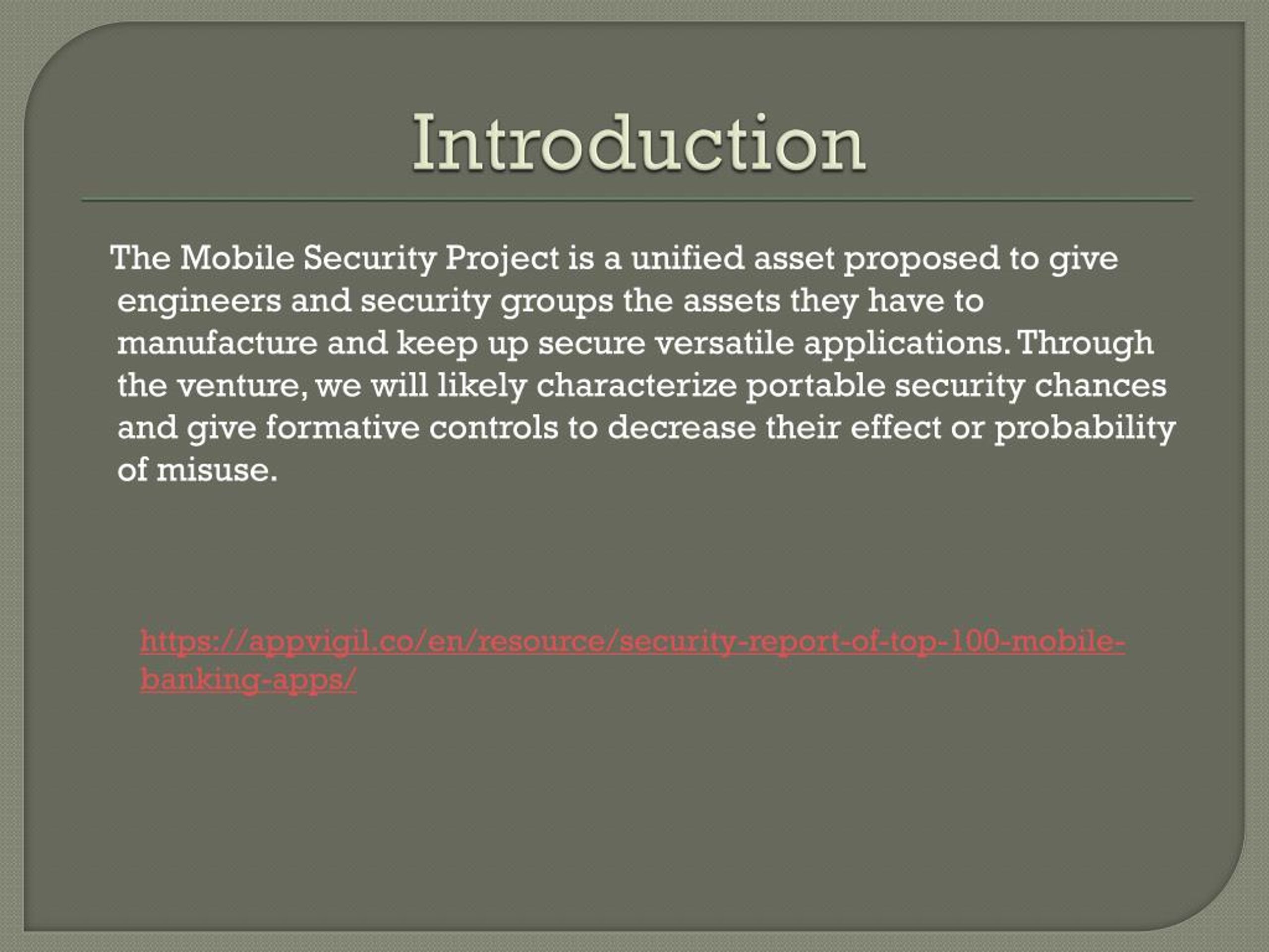 Introduction https://appvigil.co/en/resource/security-report-of-top-100-mobile-banking-apps/ The Mobile Security Project is a unified asset proposed to give engineers and security groups the assets they have to manufacture and keep up secure versatile applications. Through the venture, we will likely characterize portable security chances and give formative controls to decrease their effect or probability of misuse.