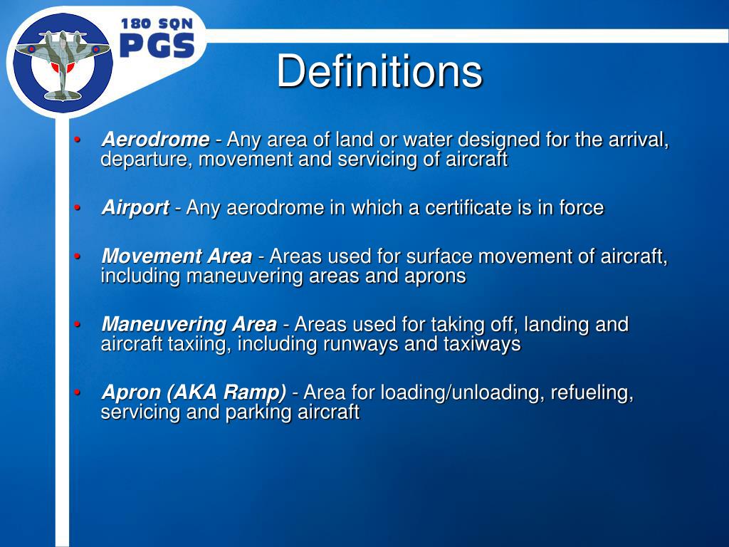 Outline • Definitions • Runway Numbering • Aerodrome Markings • Wind Indicators • Aerodrome Lighting • Radio Terms • Light Signals