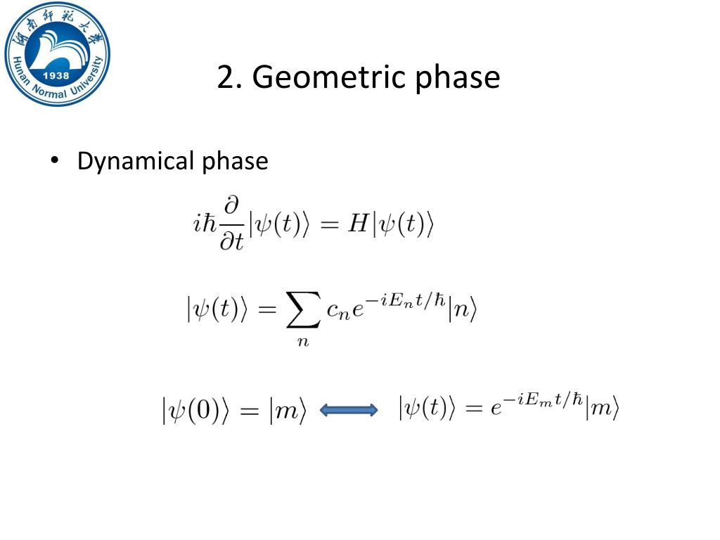 Adiabatic theorem: n=m • Dynamic phase • Geometric phase