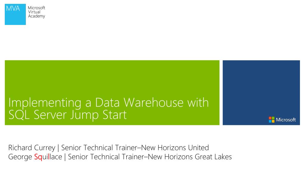 Implementing a Data Warehouse with SQL Server Jump Start Richard Currey | Senior Technical Trainer–New Horizons United George Squillace | Senior Technical Trainer–New Horizons Great Lakes