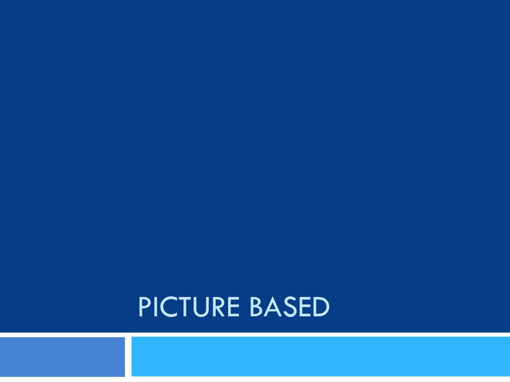 Picture Based System • A wide array of clients would benefit from the use of Picture Based Systems • Low tech systems- ideal for any level of cognitive function, easier to use with high motor ability. • High tech systems- can be more suited for children with low motor abilities because of the multitude of access methods • Both require a higher attention span