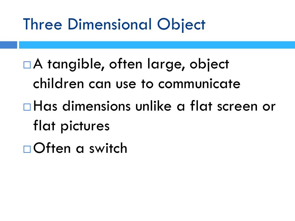 Three Dimensional Object • A tangible, often large, object children can use to communicate • Has dimensions unlike a flat screen or flat pictures • Often a switch