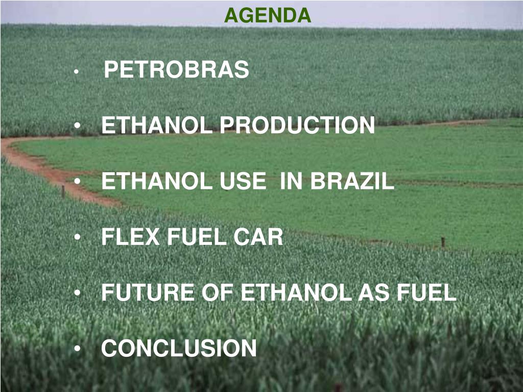 AGENDA • PETROBRAS • ETHANOL PRODUCTION • ETHANOL USE IN BRAZIL • FLEX FUEL CAR • FUTURE OF ETHANOL AS FUEL • CONCLUSION