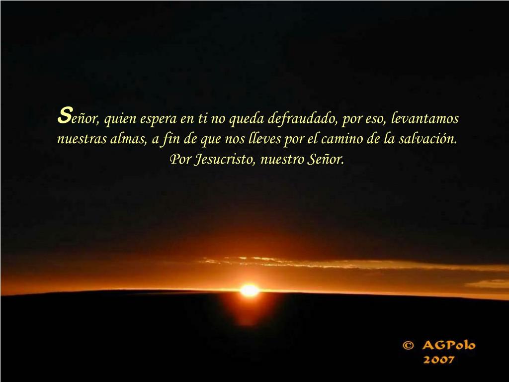 Señor, quien espera en ti no queda defraudado, por eso, levantamos nuestras almas, a fin de que nos lleves por el camino de la salvación. Por Jesucristo, nuestro Señor.