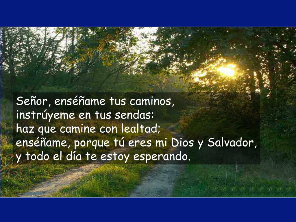 Señor, enséñame tus caminos,instrúyeme en tus sendas:haz que camine con lealtad;enséñame, porque tú eres mi Dios y Salvador,y todo el día te estoy esperando.