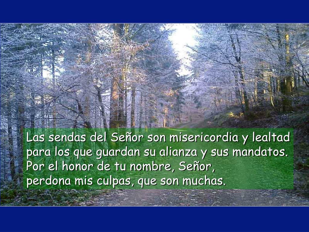 Las sendas del Señor son misericordia y lealtadpara los que guardan su alianza y sus mandatos.Por el honor de tu nombre, Señor, perdona mis culpas, que son muchas.
