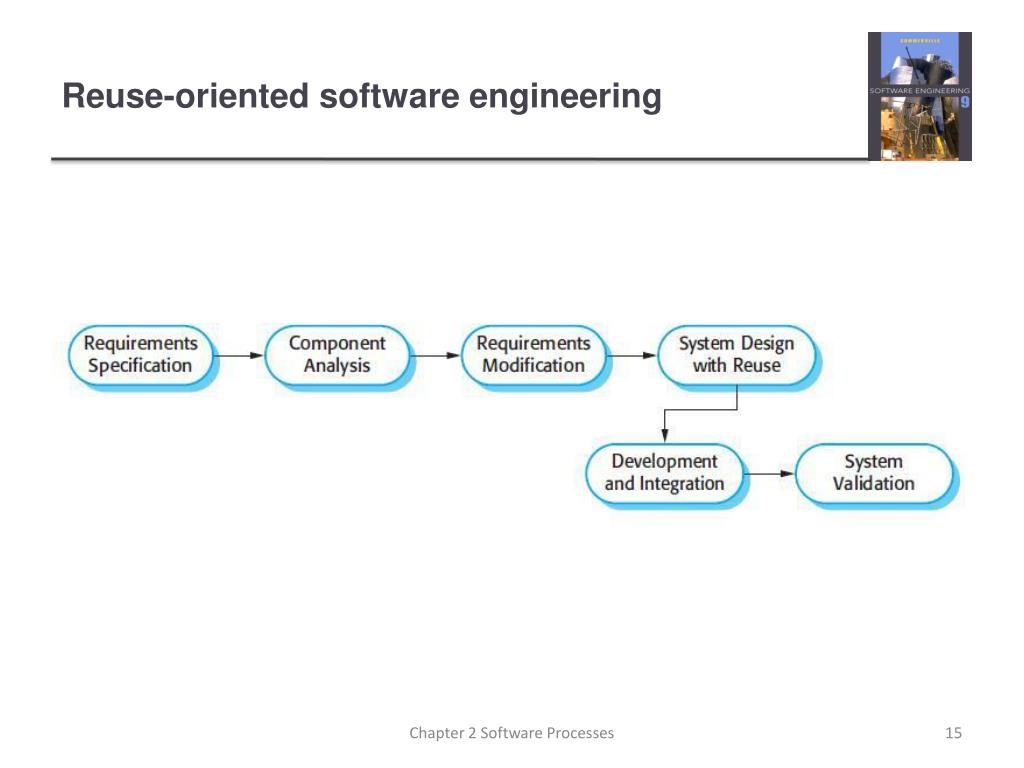 System design with reuse: the framework of the system is designed or an existing framework is reused. Development and integration: Software that cannot be externally procured is developed, and the components and COTS systems are integrated to create the new system. Reuse is now the standard approach for building many types of business system. Reuse-oriented software engineering CONTINUED... Chapter 2 Software Processes