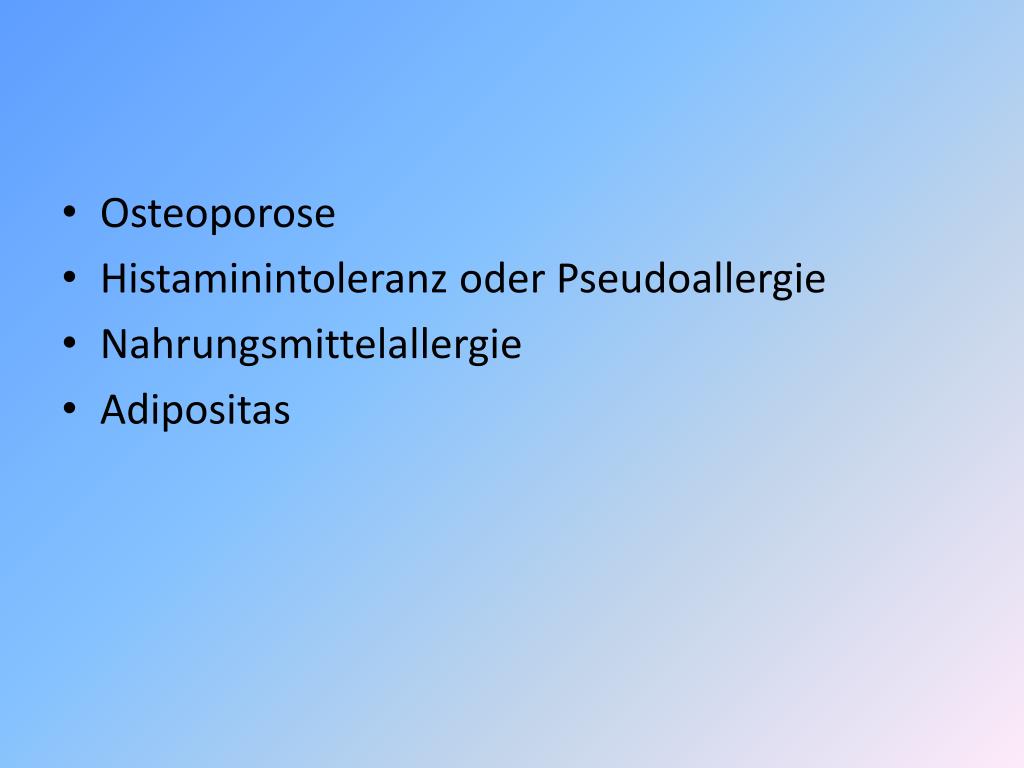 Osteoporose • Histaminintoleranz oder Pseudoallergie • Nahrungsmittelallergie • Adipositas