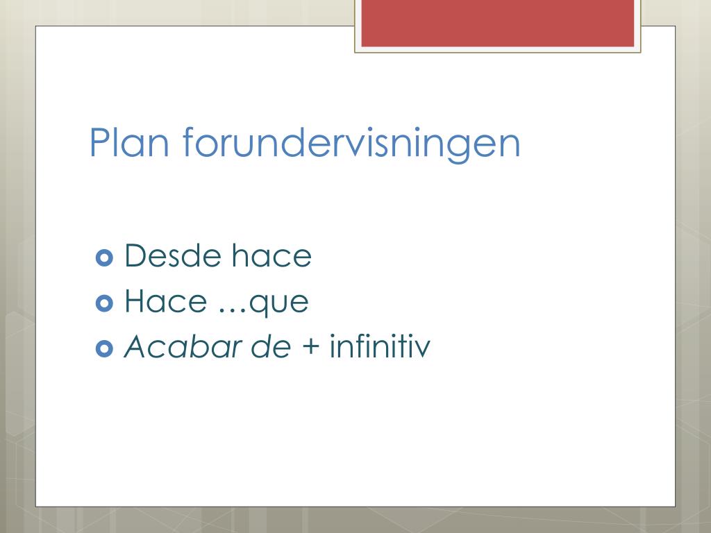 Plan forundervisningen • Desdehace • Hace …que • Acabar de + infinitiv