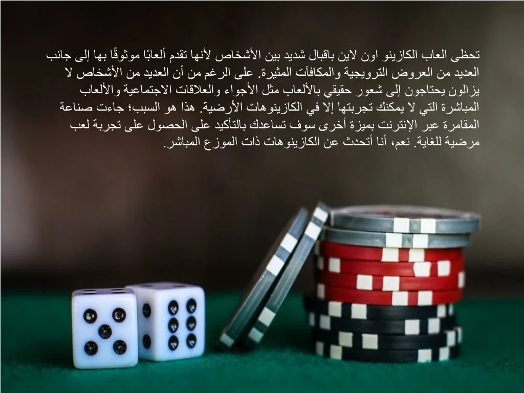 بناج ىلإ اهب ا لا ًقوثوم اًباعلأ مدقت اهنلأ صاخشلأا نيب ديدش لابقاب نيلا نوا ونيزاكلا باعلا ىظحت ةريثملا تآفاكملاو ةيجيورتلا ضورعلا نم ديدعلا . صاخشلأا نم ديدعلا نأ نم مغرلا ىلع عللأاو ةيعامتجلاا تاقلاعلاو ءاوجلأا لثم باعللأاب يقيقح روعش ىلإ نوجاتحي نولازي با ةيضرلأا تاهونيزاكلا يف لاإ اهتبرجت كنكمي لا يتلا ةرشابملا . ص تءاج ؛ببسلا وه اذه ةعان برجت ىلع لوصحلا ىلع ديكأتلاب كدعاست فوس ىرخأ ةزيمب تنرتنلإا ربع ةرماقملا بعل ة رشابملا عزوملا تاذ تاهونيزاكلا نع ثدحتأ انأ ،معن . ةياغلل ةيضرم .