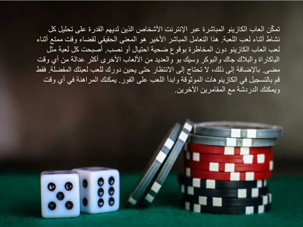 ت ىلع ةردقلا مهيدل نيذلا صاخشلأا تنرتنلإا ربع ةرشابملا ونيزاكلا باعلا نّكمت قو ءاضقل يقيقحلا ىنعملا وه ريخلأا رشابملا لماعتلا اذه ءانثأ عتمم ت بصن وأ لايتحا ةيحض عوقوب ةرطاخملا نود ونيزاكلا باعلا بعل . ةبعل لك تحبصأ لثم يأ نم ةلادع رثكأ ىرخلأا باعللأا نم ديدعلاو وب كيسو ركوبلاو كاج كلابلاو ةاراكابلا تقو ا كتبعل بعلل كرود نيحي ىتح راظتنلاا ىلإ جاتحت لا ،كلذ ىلإ ةفاضلإاب ةلضفمل . طقف روفلا ىلع بعللا أدباو ةقوثوملا تاهونيزاكلا يف ليجستلاب مق . ف ةنهارملا كنكمي تقو يأ ي لك ليلح ةبعللا بعل ءانثأ طاشن . ىضم . نيرخلآا نيرماقملا عم ةشدردلا كنكميو .