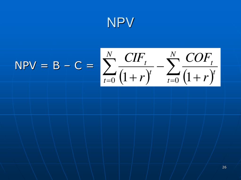 NPV NPV = B – C =