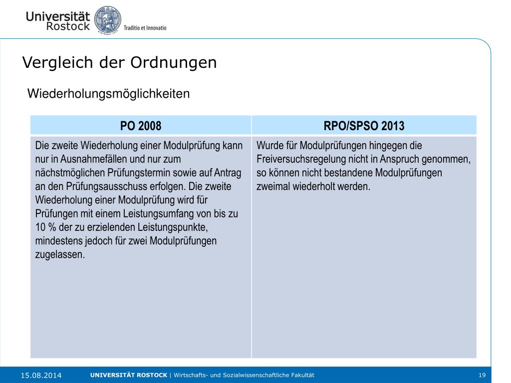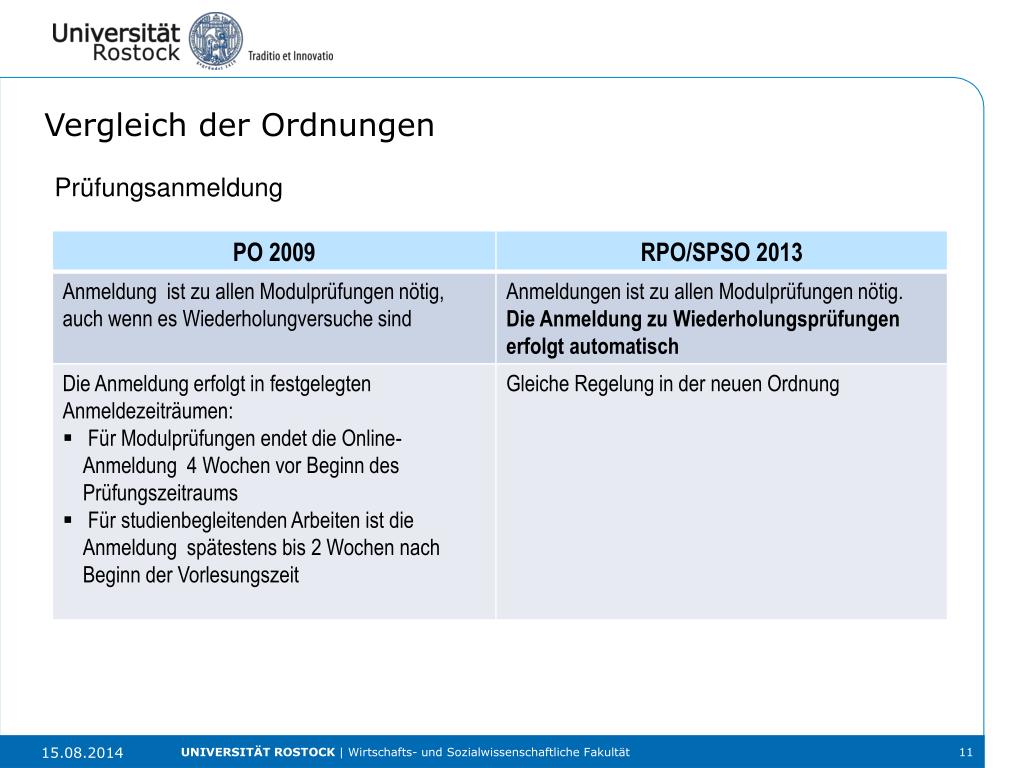 Vergleich der Ordnungen Prüfungsanmeldung UNIVERSITÄT ROSTOCK | Wirtschafts- und Sozialwissenschaftliche Fakultät
