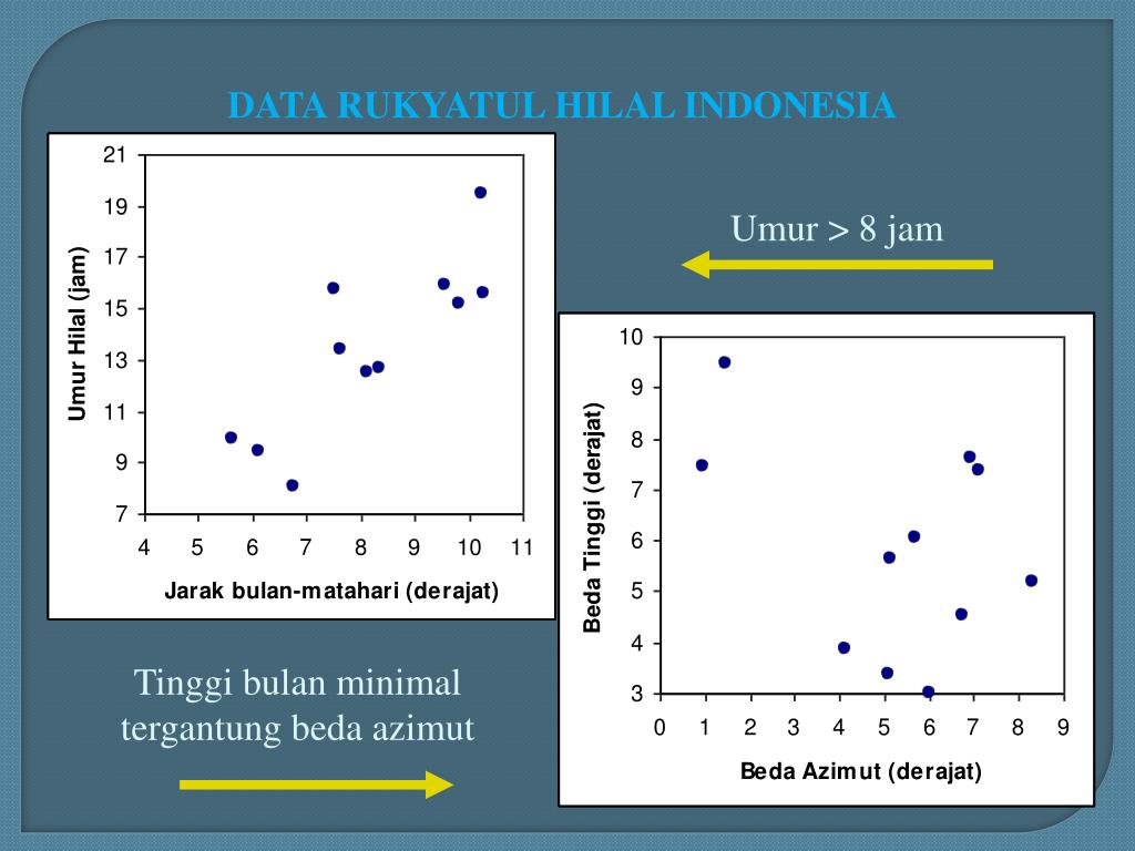 Tahun Derajat Tinggi bulan di Bandung pada awal bulan Ramadhan Syawal Dzulhijjah 1429/2008 6 - 0,7 - 4 1430/2009 -1 6 6 1431/2010 3 - 2 1,7 Rawan perbedaan 1432/2011 7,5 2,0 Rawan perbedaan 7,1 1433/2012 2 Rawan Perbedaan - 4.3 - 2.4 1434/2013 0.7 Rawan Perbedaan 4.2 3.6 1435/2014 0.8 Rawan Perbedaan 4.1 0.8 Rawan Perbedaan RawanPerbedaanBisa Terjadi Lagi
