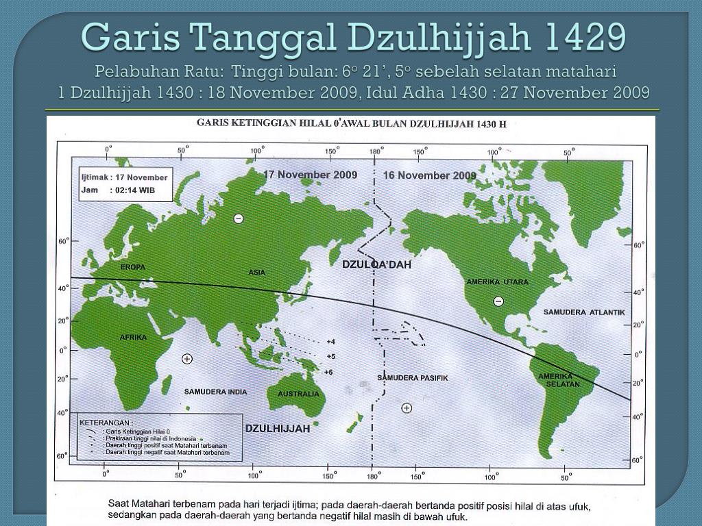 Garis Tanggal Dzulhijjah 1429 Pelabuhan Ratu: Tinggi bulan: 6o 21’, 5osebelah selatan matahari 1 Dzulhijjah 1430 : 18 November 2009, Idul Adha 1430 : 27 November 2009