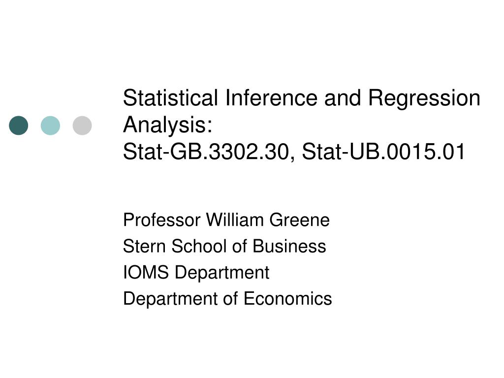 Statistical Inference and Regression Analysis: Stat-GB.3302.30, Stat-UB.0015.01 Professor William Greene Stern School of Business IOMS Department Department of Economics