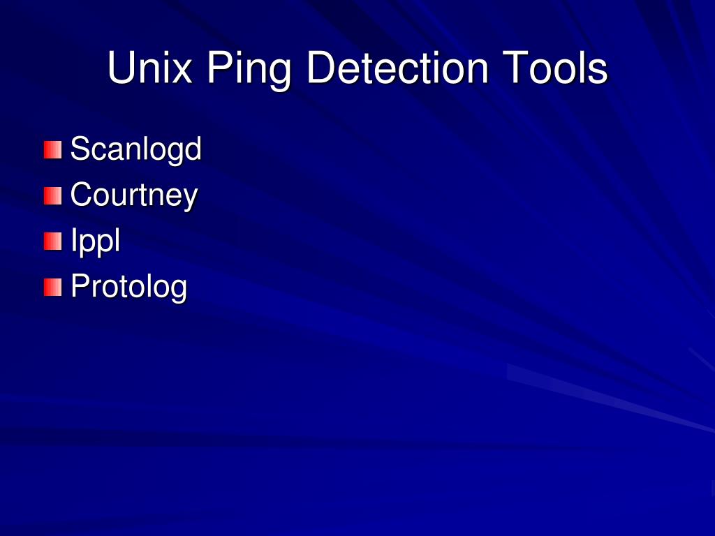 Unix Ping Detection Tools • Scanlogd • Courtney • Ippl • Protolog