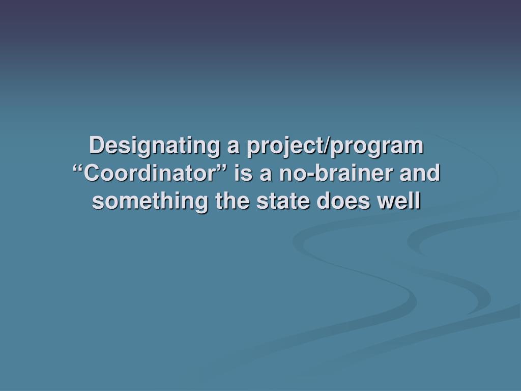 Designating a project/program “Coordinator” is a no-brainer and something the state does well