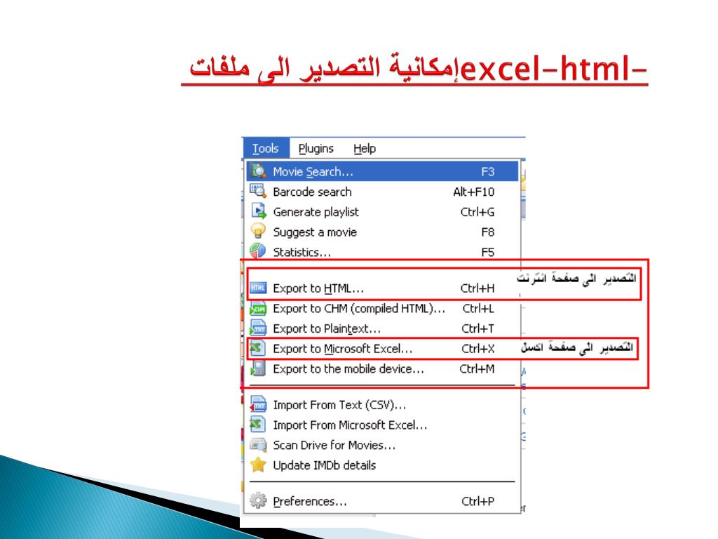 مزايا البرنامج : • قاعدة بيانات شخصية لإدارة الأفلام بشكل آلي. • تحميل جميع تفاصيل الأفلام من قاعدة بيانات الانترنت بشكل آلي. • برنامج منظم التطبيق ويدعم عدة لغات . • الشكل الخارجي للبرنامج مشابه لنظام الفيستا. • إمكانية وضع كلمة سر خاصة لقاعدة البيانات الأفلام الخاصة بك. • إمكانية مشاركة قاعدة البيانات مع الأصدقاء .