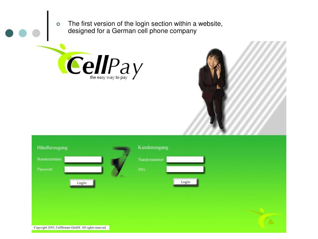 The first version of the login section within a website, designed for a German cell phone company
