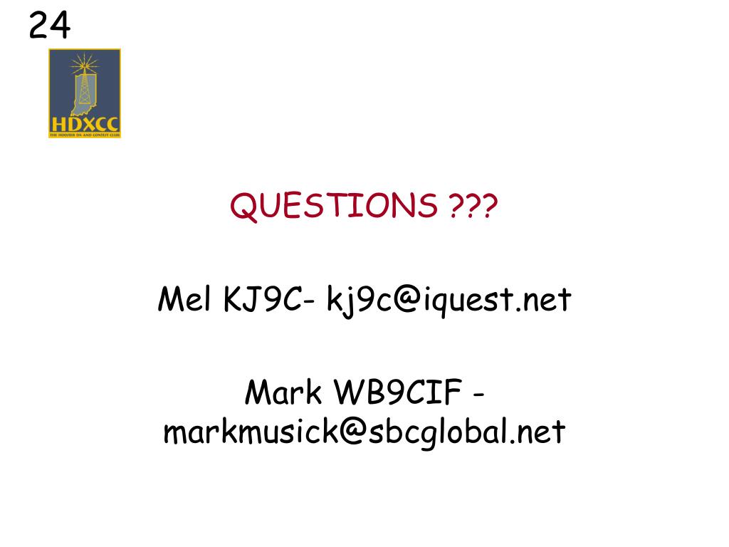 QUESTIONS ??? Mel KJ9C- kj9c@iquest.net Mark WB9CIF -markmusick@sbcglobal.net