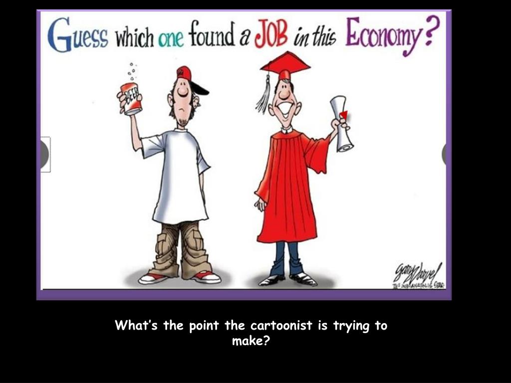 Political Cartoons. Sometimes, the best way to make a point or get someone’s attention is to use “humor.” Political cartoonists make HEAVY DUTY political statements in ways we don’t expect…. What’s the point the cartoonist is trying to make?. The Cartoonists’ Tools.