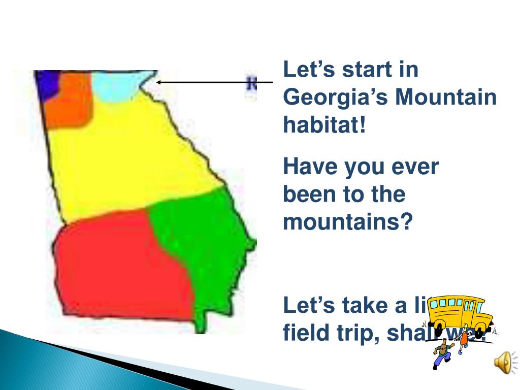 Let’s start in Georgia’s Mountain habitat! Have you ever been to the mountains? Let’s take a little field trip, shall we?