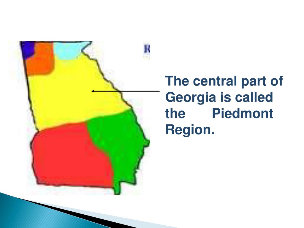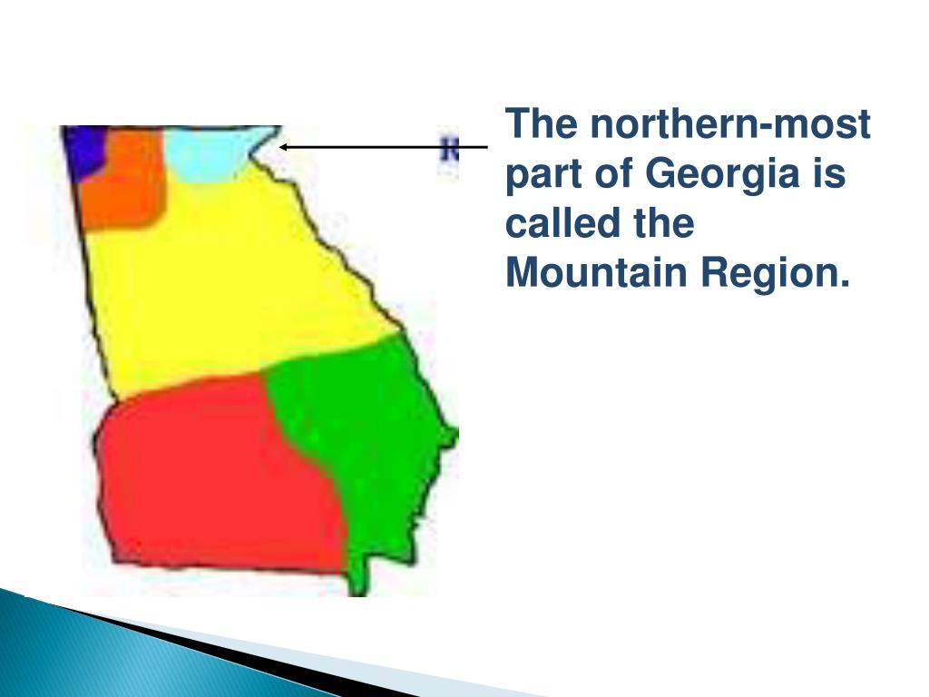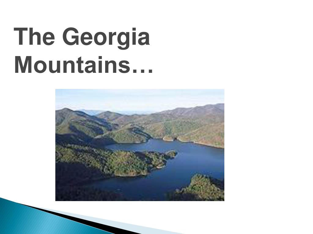 The Georgia Mountains… • The elevation is higher, and it’s shaded by trees. These things make the temperature cooler. • The terrain also makes it harder to get around. Some people live in the mountains, but it’s not highly populated. Can you think of some reasons why few people live in this region?